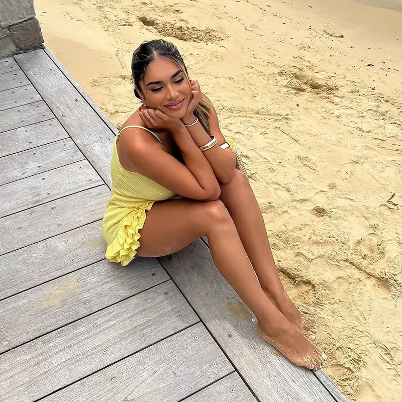 2025 Women's Knitted Backless Sleeveless Strap Dress Sexy High Street Solid Layered Slim Fit Vestidos Spring New Chic Beach Gown
