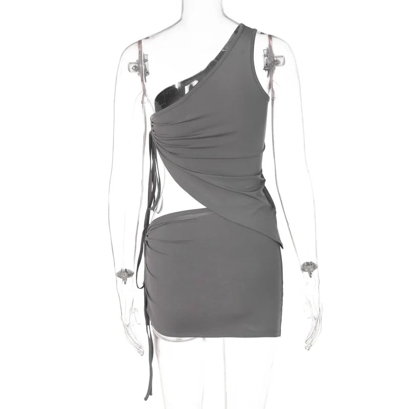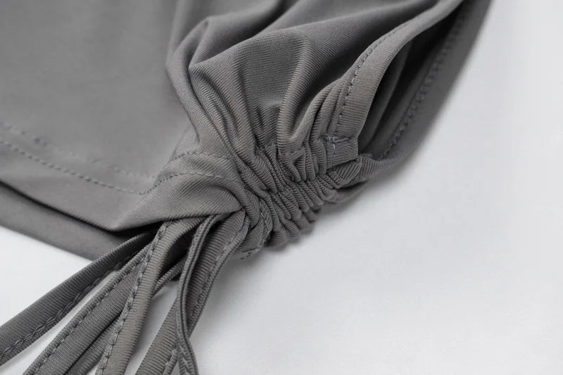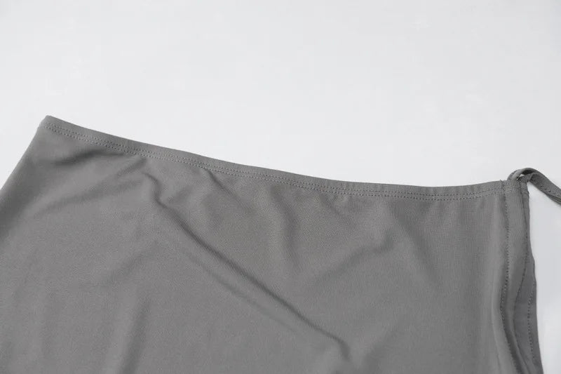2 Piece Drawstring Set One Shoulder Crop Top + Mini Skirts