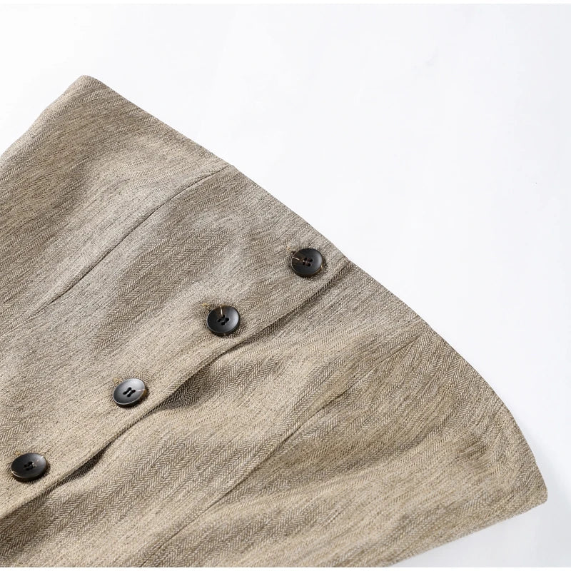 - This set is constructed with a single-breasted closure, giving it a professional look. - The high waist design and wide leg trousers provide a sleek and elegant appearance. - Made with comfortable and durable acetate material, this set is perfect for casual wear. - The slight stretch in the fabric allows for flexibility and comfort. - Featuring button and pocket decorations, this set adds stylish details to the classic single-breasted design. - The solid pattern and straight fit make this set a timeless addition to any wardrobe. - Designed for middle-aged women, this set is suitable for a variety of occasions. - With an ankle-length pant and regular clothing length, this set offers a modern and chic silhouette. - The fabric is made with 30% or less man-made fibers, ensuring both quality and sustainability. - The strapless collar and sleeveless design create a sophisticated and minimalistic look. - The elastic waist closure and flat front style add convenience and ease to the set. - Made with natural fibers,