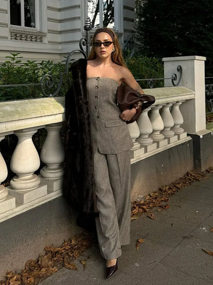 Sleeveless Single-breasted Vest High Waist + Wide Leg Trousers Set