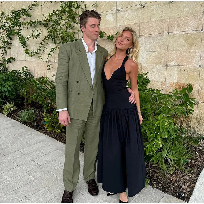 Black Satin Patchwork V-neck Sleeveless Backless Maxi Dress