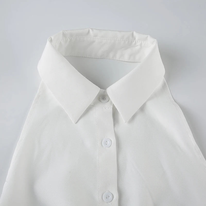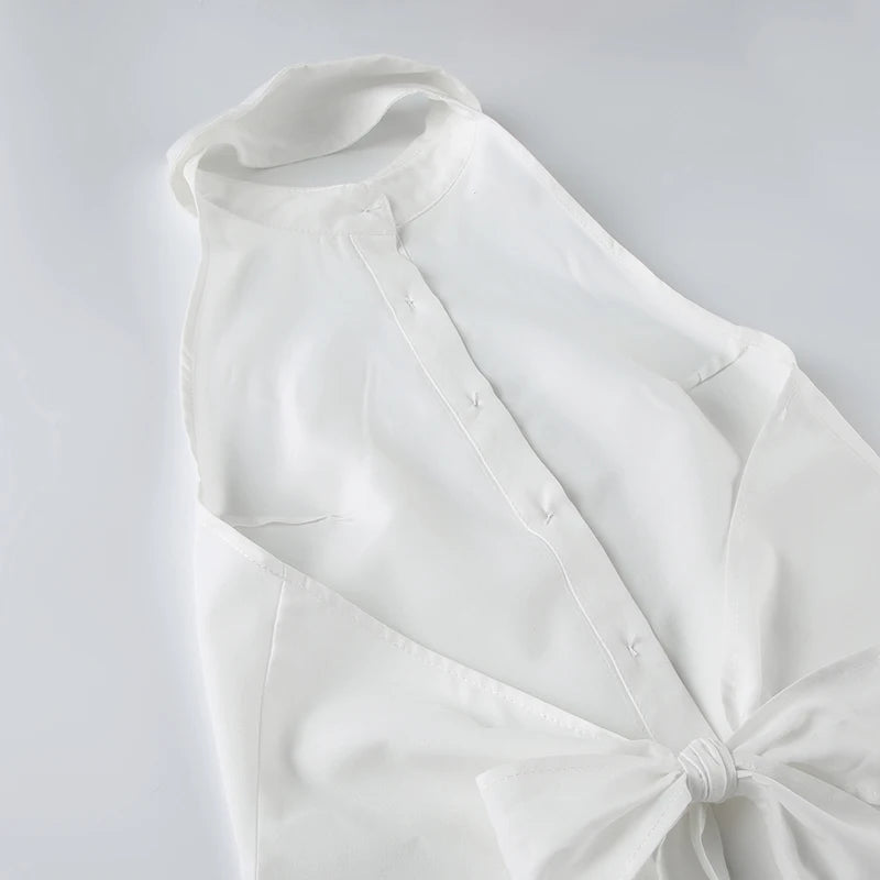 Backless Tie Bow Single Breasted Turn Down V-Neck Halter Top
