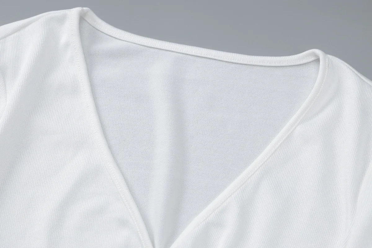 This 2 Piece Set, featuring a Ruffle High Waist Maxi Skirt and a Ruffle V-Neck Crop Top, is designed for junior office ladies. The fabric is a blend of synthetic fiber and polyester, with a content of 96% or more. The skirt has a straight silhouette and a mid-calf length, while the crop top boasts a spliced and ruched decoration. The v-neck collar has no closure, and the sleeves are regular in style and full in length. The pants have an elastic waist, and the dress has a slim and regular fit. This set is crafted using the TAT weaving technique and is patterned with solids, making it a stylish and versatile addition to any wardrobe.