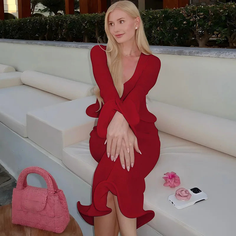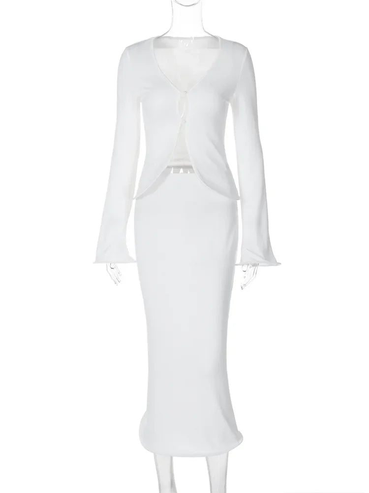 2 Piece Set Ruffle High Waist Maxi Skirt + Ruffle V-Neck Crop Top