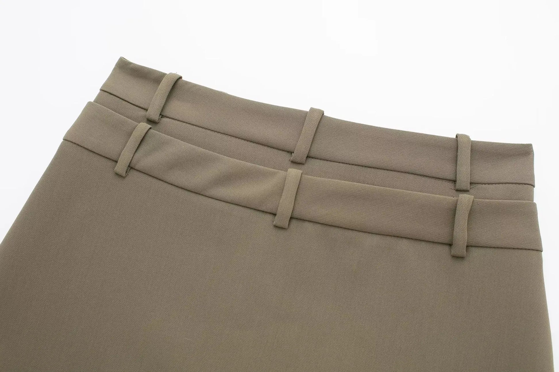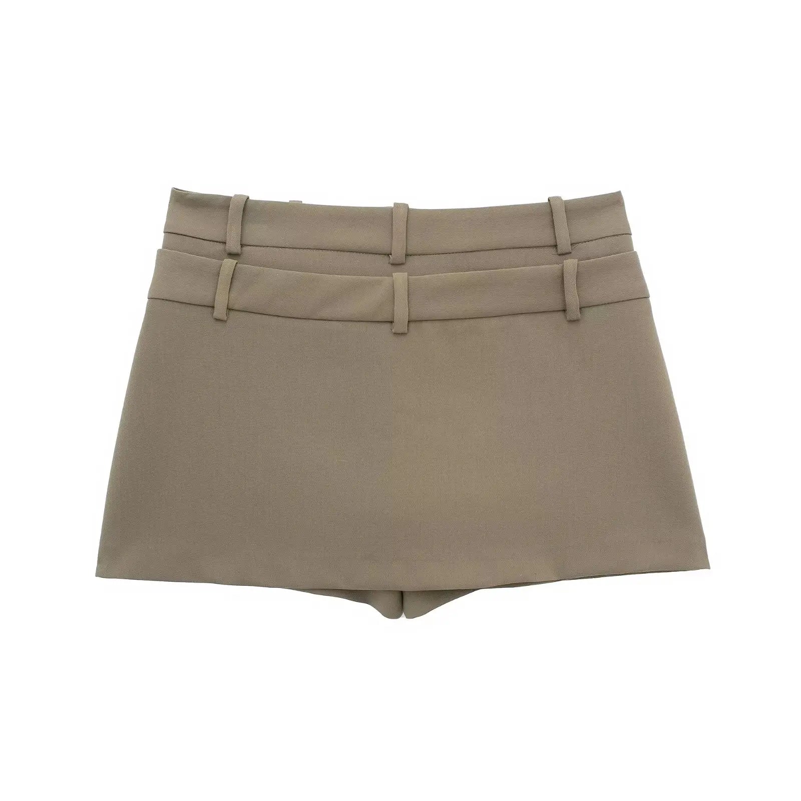 Expertly crafted with a blend of materials, this Women's Retro Khaki Skort boasts a slight stretch for added comfort and a natural waistline for a flattering fit. Its solid pattern and A-line silhouette make it a perfect choice for the office during the spring and summer seasons. This mini skirt is designed with a regular fit and is suitable for middle-aged women. With its professional and informative tone, this garment is sure to elevate any outfit.