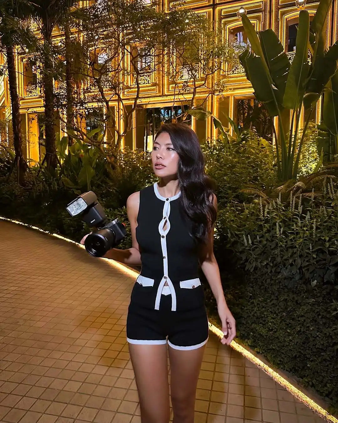 Slim Knitted Patchwork Top and Mini Shorts