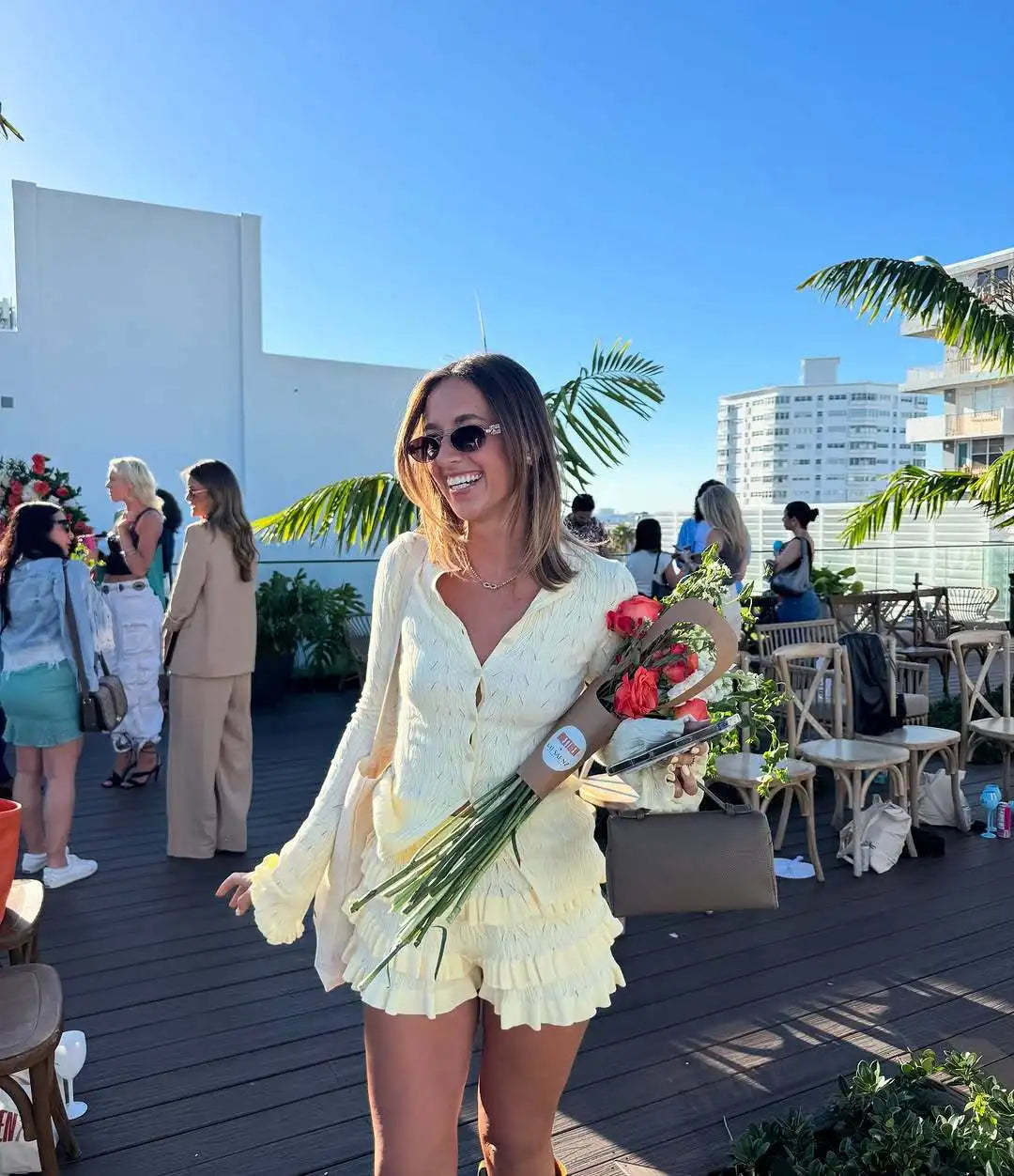 This two-piece set is designed for women in their middle ages and features a slim fit, an o-neck collar, and a single-breasted closure. The top has long sleeves with ruffle detailing and the set includes mini shorts made from polyester fabric with slight stretch. The elegant design is perfect for spring/summer and has a professional, original look. The knitted fabric is woven using expert craftsmanship and the solid pattern adds a touch of sophistication.