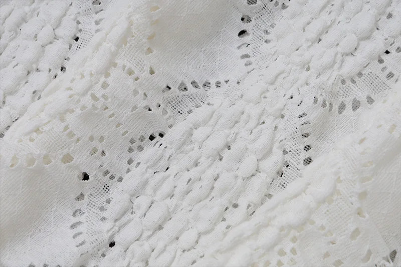 White Casual 2 Piece-Set Long Skirt + Hollow Out Patchwork Sexy Cropped Tank Top